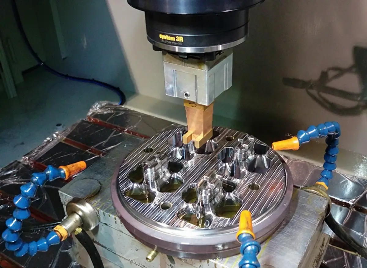 針對CNC難以加工的深槽、尖角、以及微細結構,我們採用放電加工 (EDM) 技術。透過電極與工件間的火花放電,能蝕刻出極其精細的細節,是實現高難度模具的關鍵設備。
