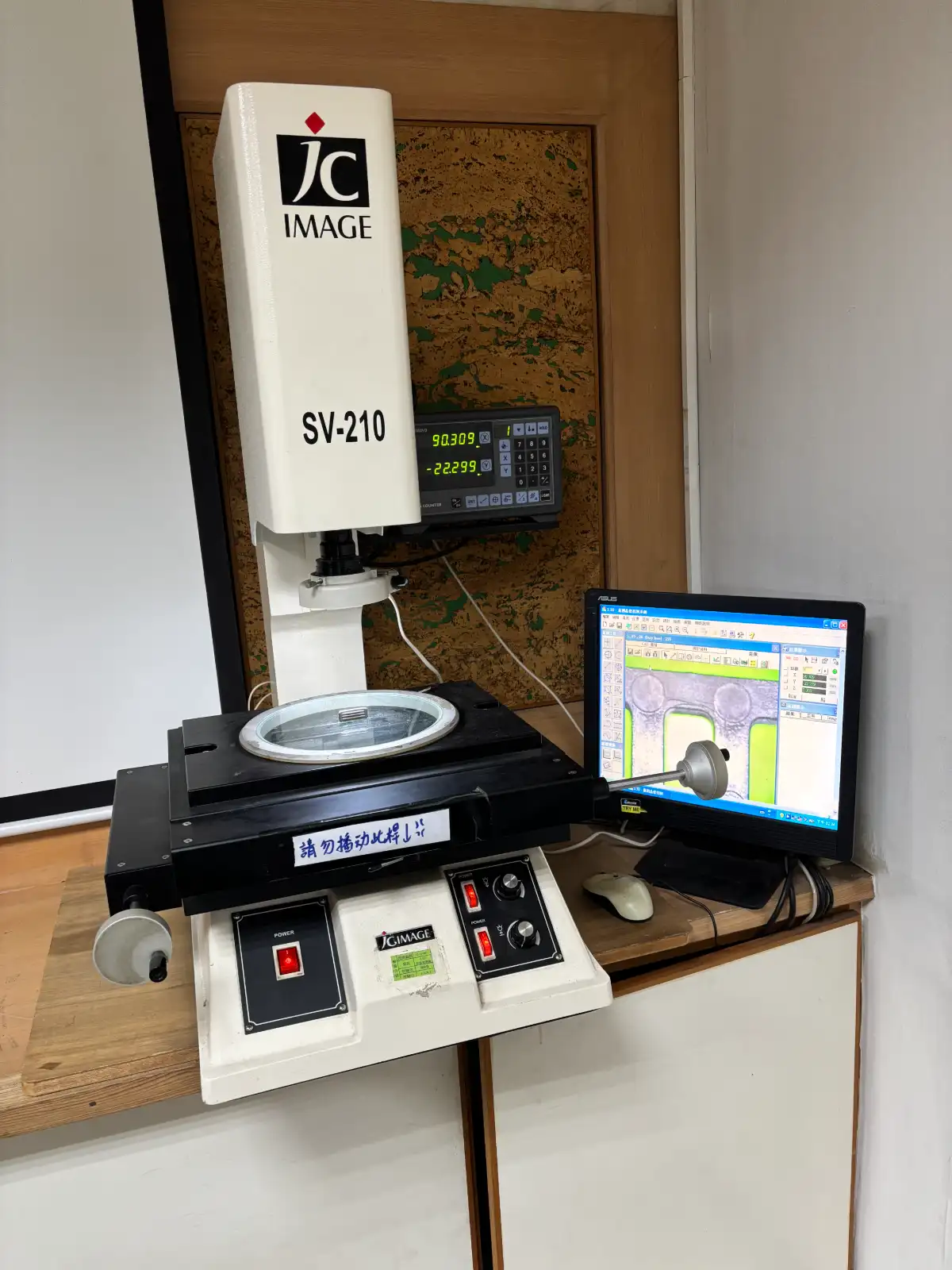 這是我們品保實驗室的核心。透過非接觸式的光學影像測量,能快速、精準地測量產品的幾何尺寸、輪廓、角度等,特別適用於尺寸複雜、傳統量具難以檢測的零件,確保每一批產品的尺寸一致性。